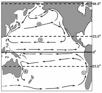 (2)②、③代表的洋流中,主要受东北信风吹拂而形成的是 。