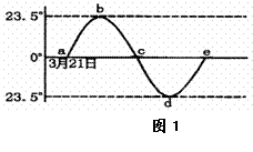 在国庆长假期间,太阳直射点的位置处于图1中的: