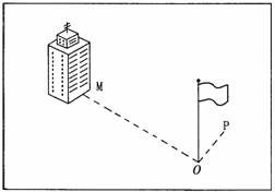 27.某学校(115°E)研究性学习活动小组,在校园内用“立竿(旗杆)见影”的方法,测算当地正午太阳高度。如图13,OP表示正午时旗杆在地面的影子,其长度随季节发生变化,6月22日缩短为零。M为教学楼,OM垂直于OP。结合图示,完成下列要求:(7分)