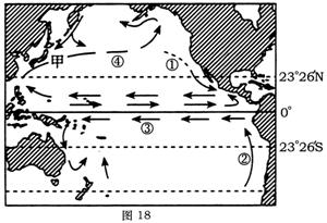 31.读“太平洋海区洋流示意”图(图18),完成下列内容。(8分)