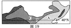 ⑶ 在图14中的B风带中用箭号画出风向(画3条)。