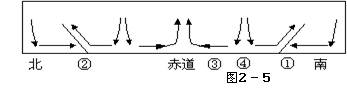 12.下列关于大气运动简图(图2-5)中的数码表示的内容正确的是: ( )