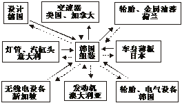 13、下图是彭蒂亚克--莱蔓牌汽车生产、销售示意图(图中实线箭头表示零部件或设计方案运输方向,虚线箭头表示汽车销售方向)