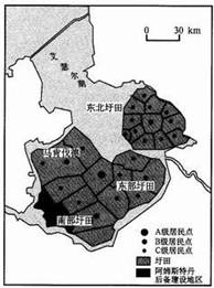 (1) 荷兰人在围海造田得来的圩田上规划居民点时应用了____________________理论,设计者把居民点分为__________等级,其中A级居民点__________个,B级居民点__________个,C级居民点__________个;并充分考虑了各级居民点的__________,根据__________来布置相应的功能。
