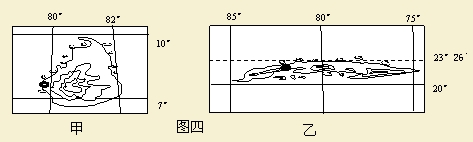 读甲、乙两区域图,结合表中信息回答下列2题。