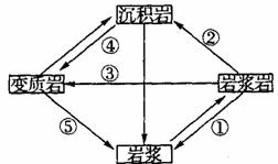 读岩石圈物质循环简略示意图,据此回答27-28题。