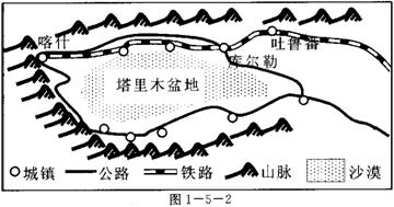 图1-5-2是塔里木盆地示意图,读图回答34-36题。