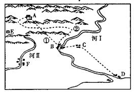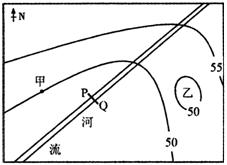 读我国东部地区某河流两侧潜水位等值线示意图,图中数值表示地下水位(单位:米),完成58-59题。