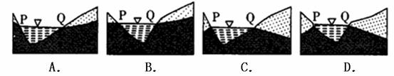能正确表示河流PQ剖面的是(注:黑点部分为透水层,虚线部分为河水)