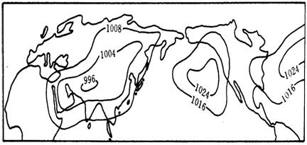 61.(7分)下图为海平面气压分布图,读图回答问题。