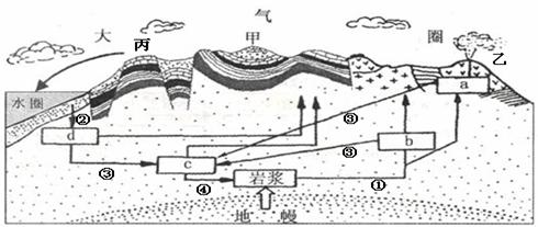 24、读岩石圈物质循环示意图,回答下列问题。(11分)