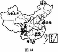 30.读图14,关于植被变化的描述反映出从沿海到内陆的