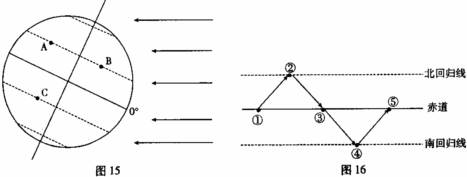 31.读某日太阳光照示意图(图15)和太阳直射点的回归运