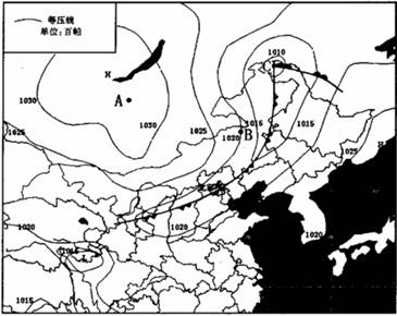 (2)B处的风向为_________,其风力比A处大的原因是_______________________。