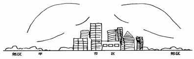(2)在图中用粗线标出城市与郊区之间的热力环流的方向。