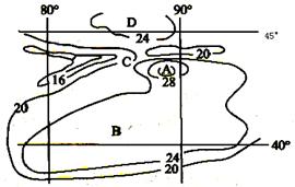 11.2月份,下列纬度大致相当的亚热带海区中,海水表面温度较高的是