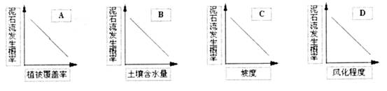 25.下列各图中,表示引发泥石流因子与发生泥石流关系正确的是w.w.^w.k.s.5*