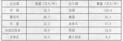 读2 001-205 0年世界移民趋势表。回答2 O-21题。