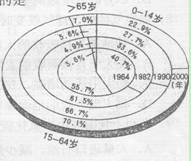 读“1 964-2000年中国各年龄段人口占总人口比重变化图”,回答25-26题。