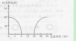 下图为北半球某地某日太阳高度变化图。读图回答32-33题。