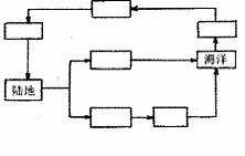 (2)写出图中各字母代表的水循环环节的名称:A_______;B_______;C__________;F__________;G__________。人类修建水库工程影响的是_______环节。 (3)选择上图中的字母填入下图中相应的方格内,以正确表示海陆间大循环过程。 (4)海陆间大循环的重要性表现在_______________________。也能在这一方面起到一定作用的水循环类型是__________。 (5)水循环是指自然界的水______________的过程。其发生的主要动力是______________和_________。