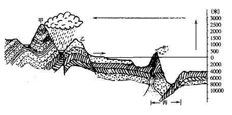 34.下图为亚洲东海岸某地海陆分布剖面示意图,读图回答下列问题。(7分)