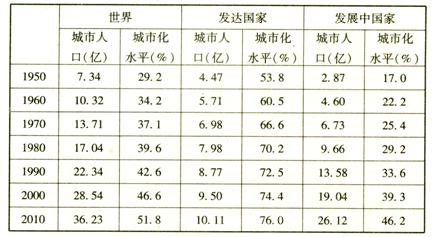 ①1950-1980年,发达国家和发展中国家城市化进程都缓慢