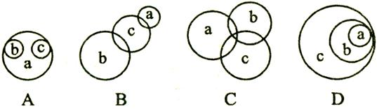 35.如果a、b、c为不同等级的城市,下列哪幅图能正确反映出城市的等级体系