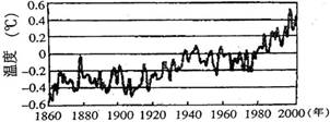 读“1860--2002年全球平均气温距平变化”,完成16-17题。
