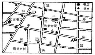 读下面“北方某城市书店和书亭分布图”,回答11~13题。