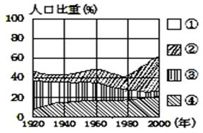 下面是某国从18世纪80年代到20世纪70年代人口增长模式转变的四个阶段示意图,读图回答1-2题。