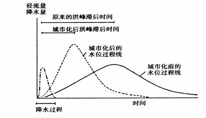 ①水泥路面多 ②下水道多 ③绿地多 ④人口多