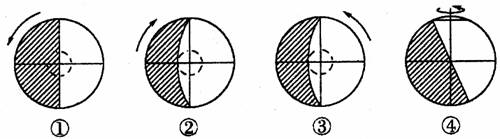 17、下列四项图中(空白部分表示白昼,斜线部分表示黑夜,小圆表示极圈),太阳直射点纬度位置大致相同的是( )