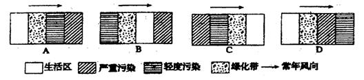 10.下面是某城市功能分区的四种方案(图2-1),最合理的是 ( )