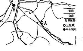 下图中A城为以机电、轻纺、食品工业为主的H市的卫星城。读图完成26--27题。