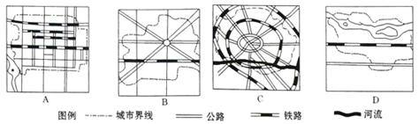 下图为四个规模相近的城市的道路网,其中最利于客、货运输的是