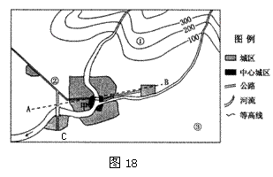 (2)图18中C处为一新建工业区。 导致工业集聚,工业集聚有利于各企业充分利用 ,加强彼此间交流和协作,降低 ,集中处理废弃物等。
