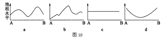 (1)图19中,最能够反映图18中从A到B一线地租变化情况的是 图。