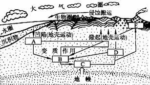 (1)填出岩石圈物质循环运动的四个组成部分: