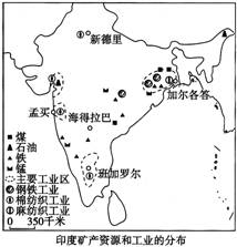 (1)印度最大的工业区分布在印度半岛的 ,附近有丰富的 、