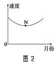 读“地球自转线速度随纬度变化图”(图1)和“地球公转速度变化图”(图2),回答1-2题。