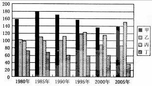 下图示意我国及东部,中部,西部,三大地带能源自给率的变化情况。读图完成3-4题。