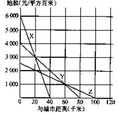 9.图中能正确表示城市从市中心到外缘地租水平变化趋势的曲线是