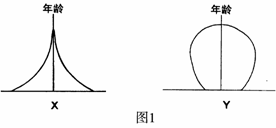 人口金字塔结构图是反映人口年龄和性别结构的示意图。横坐标表示各年龄组的人口在总人口中所占的百分比。中间的纵坐标表示人口年龄分组,左边表示男性,右边表示女性。下图是X、Y两国