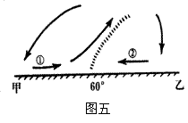 图五为大气环流(局部)的垂直剖面,图中气压带、风带名称的叙述正确的是( )