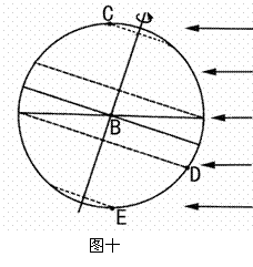 (1)在图九中地球公转轨道上画出公转的方向。(1分)