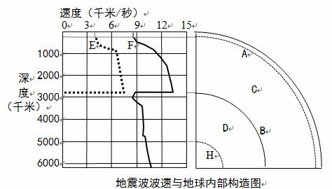 43. 读地震波波速与地球内部构造图,回答(共14分):