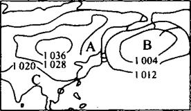 24.当气压分布如下图所示时(单位:hPa),下列叙述正确的是