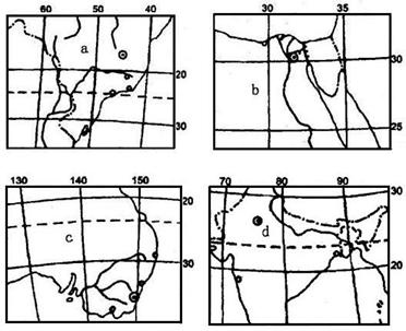 (2)b和d所示国家都盛产的重要经济作物是 ,适宜该经济作物生长的自然条件是 。