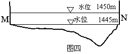 25.若河流在枯水期时在MN断面的流量为30立方米/秒,平均流速为1.2米/秒,洪水期平均流速为2米/秒(如图四),则洪水期河流在MN断面上的流量为: